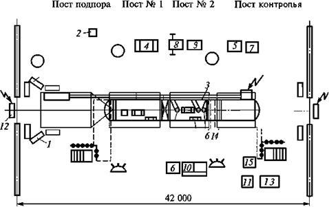 Окончательно площадь зон ТО и ТР ипостов диагностики обычно вынужденно корректируется и устанавливается с учетом того, что при строительстве широко используются унифицированные типовые секции и пролеты, а также типовые конструкции и детали, изготовленные серийно заводами стройматериалов