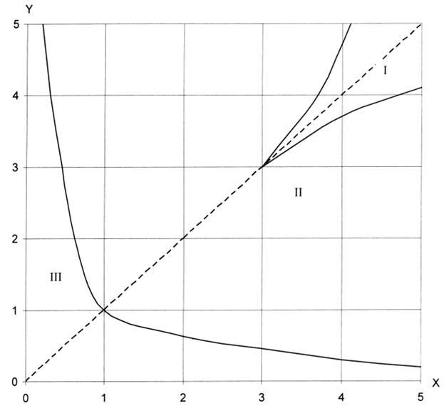 Определим область нахождения точки на диаграмме профессора Вышнеградского, по полученным координатам X,Y.