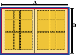 Обрезной формат - это формат, по которому происходит обрезка издания. Допустим, если готовится реклама на разворот журнала, то размеры ее АхВ (см. рис.), где А — расстояние по горизонтали от обреза слева до обреза справа, В — расстояние по вертикали от обреза сверху до обреза снизу.