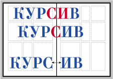 По краям фона либо могут остаться белые полосы, либо обрежется какая-нибудь информация. Происходит это из-за того, что любая бумагорезальная машина имеет погрешность 1мм, а иногда и больше. Также внутренние страницы могут быть немного уже из-за особенностей скрепления данного издания. Чтобы избежать эти неприятности необходимо с каждой стороны фона оставить несколько миллиметров на припуск (на рисунке припуск обозначен синим цветом). Также, не располагать информацию близко к полю, как уже говорилось выше, а на 5-7 от него. Отдельно нужно сказать о проблемах, возникающих с корешковым полем. Во-первых, это несовпадение цвета на двух страницах. Во-вторых, это момент прохождения текста через сгиб. Как видно на рисунке .. , недопустимо попадание буквы в сгиб, так как она будет невидимой из-за «волн» на развороте. Также важно правильно рассчитать расстояние между буквами. Важно учесть, что в компьютерном виде это расстояние кажется больше, чем окажется на самом деле.