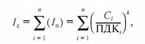 — предельно допустимая концентрация i-го вещества; k — константа, принимающая значения 1,5; 1,3; 1; 0,85 соответственно для веществ 1-, 2-, 3-, 4-го классов опасности. Ic