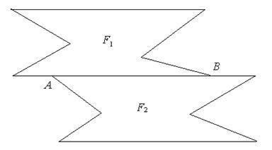 (а потому и пересечение всех этих отрезков) содержит отрезок , т. е. их пересечение не состоит из одной точки. Значит, фигура F