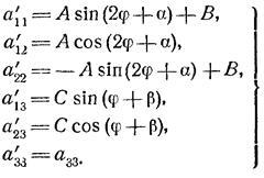 соответствующего повороту осей на угол α.