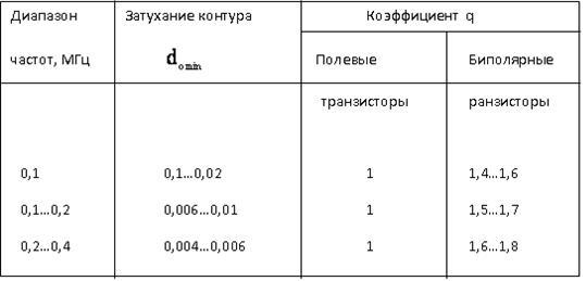 где - максимальные значения коэффициентов перекрытия диапазона различными реактивными элементами контуров.