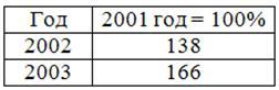 Таблица А.1 - Повышение цен на продукцию естественных монополий в 2002 и 2003 годах (2001=100%) [8]