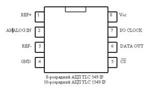 Рис. 12. Розміщення виводів аналого-цифрового перетворювача TLC 549