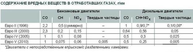 Первыми подняли проблему по поводу вредности выхлопов в США и в Японии, где проблема загазованности в крупных городах встала особенно остро. Были законодательно утверждены требования по токсичности выхлопов новых автомобилей, которые периодически пересматривались и ужесточались. Вскоре аналогичные законы были приняты и в странах Европы (таб.2).