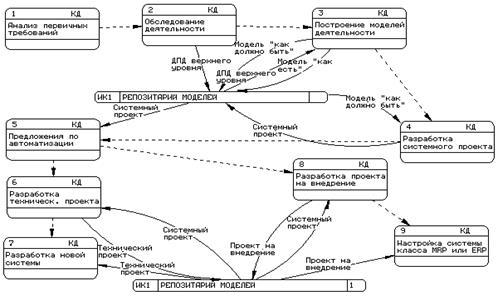Далее осуществляется обработка результатов обследования и построение моделей деятельности предприятия следующих двух видов: