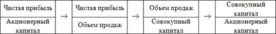 Эта зависимость раскрывает связь между рентабельностью всех активов (или производственных активов), рентабельностью продаж и фондоотдачей (показателем оборота производственных фондов). Экономическая связь заключается в том, что вышеприведенная зависимость прямо указывает пути повышения рентабельности: при низкой доходности продаж необходимо стремиться к ускорению оборота производственных активов.