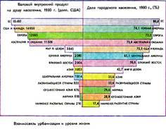 В 1990-е гг. 43% жителей Земли жили в городе. Максимальная в мире доля горожан более 70% - отмечалась в экономически развитых регионах (в Европе, Северной Америке, Австралии),где рост и развитие городов как центров промышленности современного типа началось в период промышленной революции. Наибольшие темпы прироста городского населения здесь в начале 20 века.