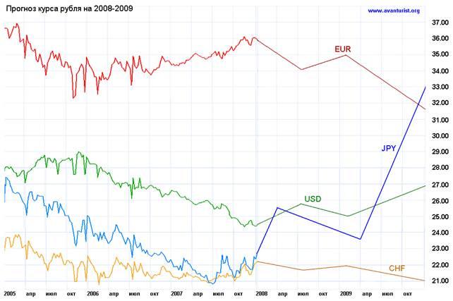 Рисунок 2.2 – Прогноз курса рубля на 2008 – 2009 гг