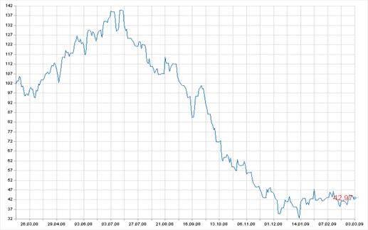 Рисунок 2.4 – Динамика цен на нефть, как причина кризиса в России