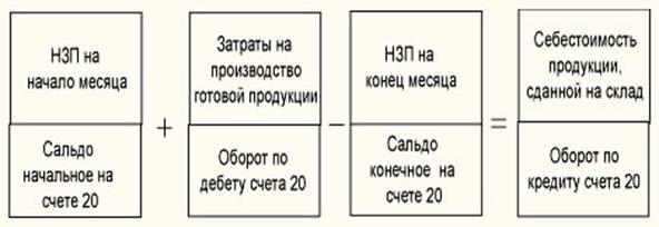 Себестоимость готовой продукции, сданной на склад, т.е. кредитовый оборот по счету 20 «Основное производство», определяется с учетом незавершенного производства на начало и конец отчетного периода по следующей схеме (рис.4) :