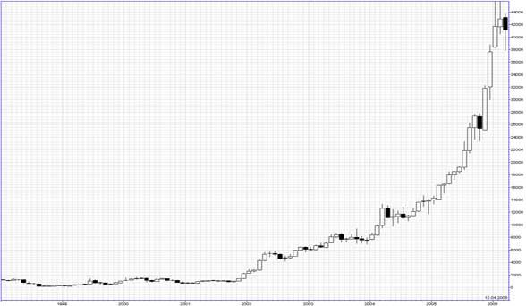 Акции Сбербанка с 2002 по 2005 год выросли более чем на 1300%