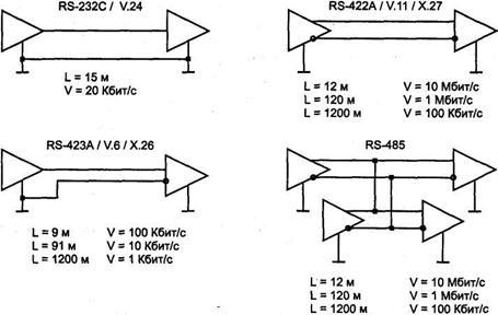 Другим немаловажным параметром интерфейса является допустимое удаление соединяемых устройств. Оно ограничивается как частными свойствами кабелей, так и помехозащищенностью интерфейсов. Часть помех возникает от соседних линий интерфейса — это перекрестные помехи, защитой от которых может быть применение витых пар проводов для каждой линии. Другая часть помех вызывается искажением уровней сигналов.