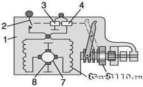1. Механизм привода стартера вводит шестерню на валу якоря в зацепление с зубчатым венцом маховика.