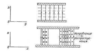 Наиболее простой направляющей системой является совокупность двух параллельных проводящих бесконечных плоскостей, пространство между которыми заполнено диэлектриком. Конечно, направляющая система такого типа представляет лишь теоретический интерес. Тем не менее, анализ электромагнитного поля в ней позволяет выяснить основные особенности распространения электромагнитных волн в реальных направляющих устройствах.