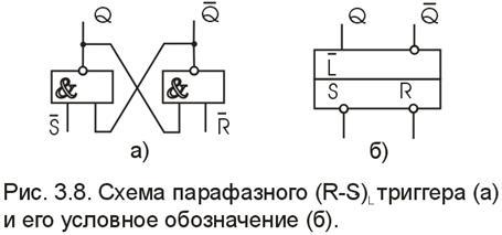 Парафазный вариант триггера, имеющего прямой и инверсные выходы, получатся либо путем инвертирования сигнала Q, либо посредствам преобразования уравнений (3.4) в базисе элементов И-НЕ: