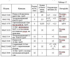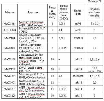 Параметры некоторых наиболее типичных микроэлектронных АЦП компании DallasSemicondfctor(фирмы Maxim )приведены в табл. 18.