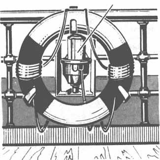 Спасательный круг с сигнальным огнем находящейся на леерном ограждении