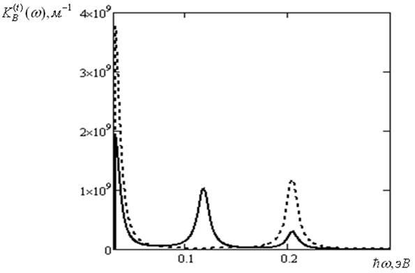 Рисунок 6 – Спектральная зависимость коэффициента примесного поглощения с учетом лоренцева уширения уровней энергии электрона