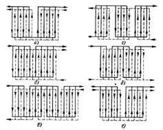 д) смешанный частный ток при общем прямотоке (рисунок 3д);