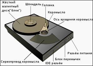 Жесткие диски включают в себя электромеханическую и электронную части. Электромеханическая часть размещается в жестком корпусе, внутри которого закреплен шпиндельный двигатель с вращающимся шпинделем и смонтированными на нем дисками накопителя, а также установленный в этом же корпусе подвижный блок головок чтения и записи с приводом, обеспечивающим позиционирование (перемещение) головок.