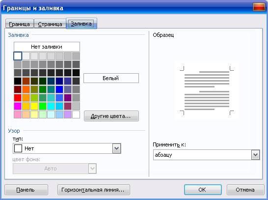 Для оформления заголовка, абзаца или целой страницы рамкой (в том числе с тенью), заливкой и т. д. необходимо вызвать диалоговое окно Границы и заливка