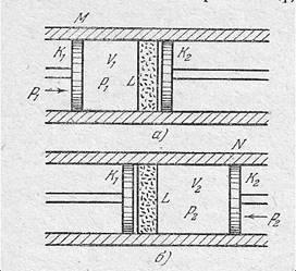от положения М до перегородки Lобъем газа изменяется от значения V1