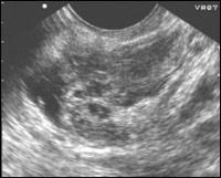 · визуализация в проекции придатков матки гетерогенного образования, имеющего различную форму и размеры;
