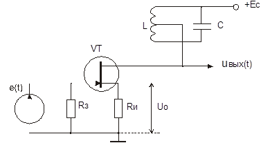На вход резонансного умножителя частоты, выполненного на полевом транзисторе (рисунок 2) подано напряжение , где - частота сигнала. Нагрузкой умножителя является колебательный контур с резонансной частотой , ёмкостью и добротностью . Коэффициент включения катушки - . Сток - затворная характеристика транзистора задана в виде таблицы 3 и может быть аппроксимирована в окрестности полиномом: