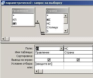 4.5. Создадим параметрический запрос, с помощью которого будет выводиться вид правления страны.