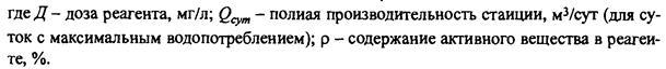 – содержание безводного продукта в коагулянте (извести), %; принимается для очищенного коагулянта 50%, для неочищенного – 33.5%, для извести – 60.70%;
