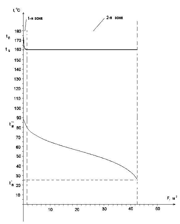 Считаем, что переохлаждения конденсата нет. Расчет поверхности проводим отдельно для каждой зоны (рис. 2).