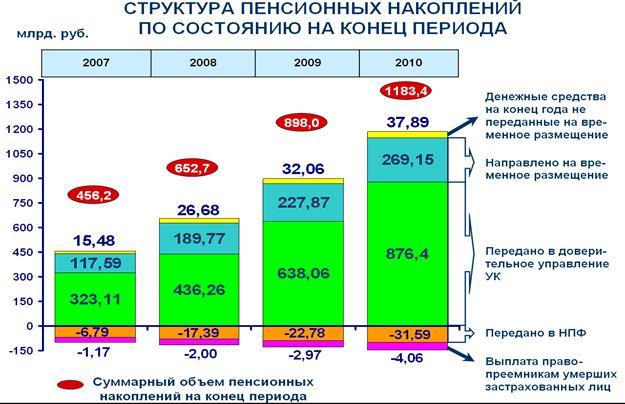 С 2004 г. Пенсионный фонд Российской Федерации начал осуществлять передачу средств пенсионных накоплений застрахованных лиц в доверительное управление частным управляющим компаниям (УК), государственной управляющей компании (ГУК) и негосударственным пенсионным фондам (НПФ), допущенным к работе со средствами государственного обязательного пенсионного страхования.