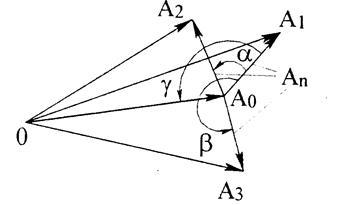 Получаем систему треугольников, в каждом из которых неизвестна одна сторона Ап, но стороны равны между собой и пропорциональны . На основании теоремы косинусов: