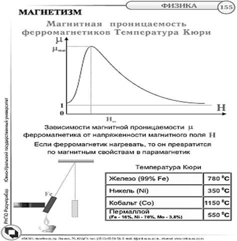 Крива зміни магнітної проникності r для феромагнітного матеріалу дана на тім же мал. 3. Як видно з графіка, магнітна проникність з ростом напруженості поля змінюється в досить широких границях, що утрудняє її застосування для розрахунків. На кривій Мr(H) відзначають два характерних значення магнітної проникності: