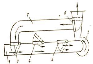лятора2, обводной канал 7 и канал 1 в шахту.