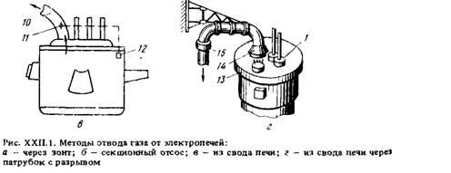 Количество газа, поступающего на очистку, зависит от способа его отвода от электропечи. Для улавливания и отвода газов, вьщеляющихся от электропечей, применяют: