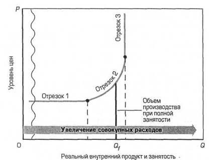 Если экономика находится на промежуточном или классическом отрезке кривой совокупного предложения AS,