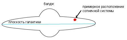Форма Галактики несколько отличается от диска тем, что в центральной части её имеется утолщение, ядро