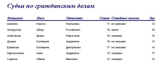 Например, для таблицы «Судьи по гражданским делам» отчет выглядит следующим образом: