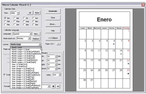 2. В открывшемся окне Oberon Calendar Winzard можно задать нужные вам установки, мы остановимся только на выборе языка.