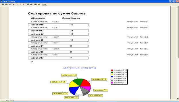 Рисунок Г.1 – Количество абитуриентов по специальностям – отчет и диаграмма