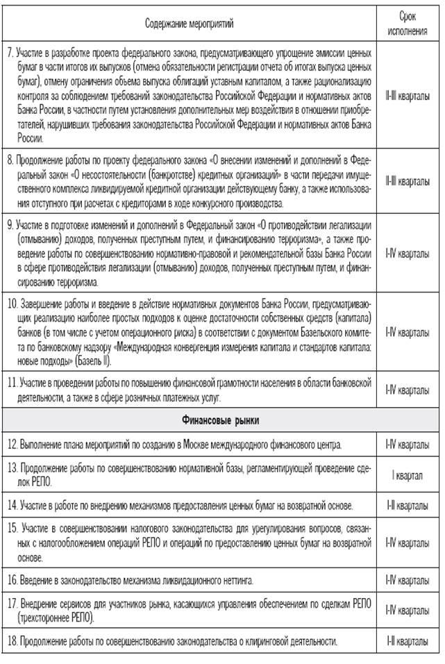 3.1 План важнейших мероприятий Банка России на 2010 год по совершенствованию банковской системы Российской Федерации, банковского надзора, финансовых рынков и платежной системы России
