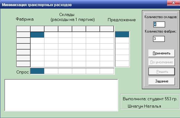2.1 Математическая модель 82.2 Выбор метод составления опорного плана 92.3 Нахождение оптимального решения 113 Практическая реализация 13