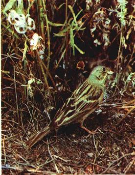 Садовая овсянка—обычный обитатель многих сельскохозяйственных угодий.
