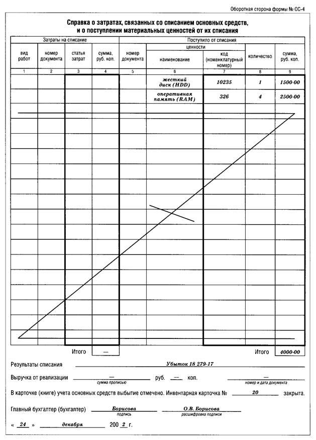 5.2. Акт на списание основных средств (форма N ОС-4)…………..… 19