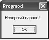 При не верном вводе пароля будет выведено сообщение об ошибке. Внешний вид сообщения приведен на Рисунке 18.