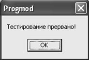 Если в процессе тестирования будет осуществлен выход из программы будет выведено окно-сообщение о прерывании тестирования (Рисунок 26). При этом результаты тестирования сохранены не будут.